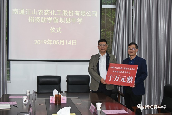 獻上一份愛心,托起一片希望。在這個孕育希望的季節(jié),2019年5月14日南通江山農(nóng)藥化工股份有限公司捐資助學留壩縣中學儀式在留壩縣中學會議室舉行,捐資助學儀式由留壩縣中學校長楊锃主持。