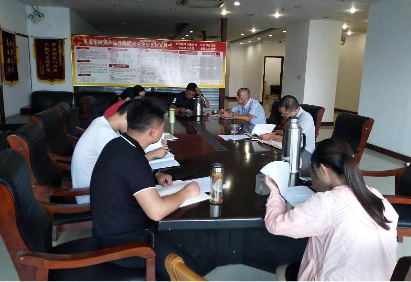 為了更好的落實(shí)公司黨委要求,進(jìn)一步加強(qiáng)黨員干部的先鋒模范作用,近日,南通國(guó)融資產(chǎn)運(yùn)營(yíng)有限公司第一黨支部以“學(xué)習(xí)黨章黨規(guī)心得體會(huì)交流”為主題,在公司黨員活動(dòng)室召開(kāi)了主題黨課學(xué)習(xí)活動(dòng)。活動(dòng)由國(guó)融資產(chǎn)支部書記瞿偉主持,黨委書記劉海兵、第一支部相關(guān)黨員及積極分子共8人參加此次活動(dòng)。