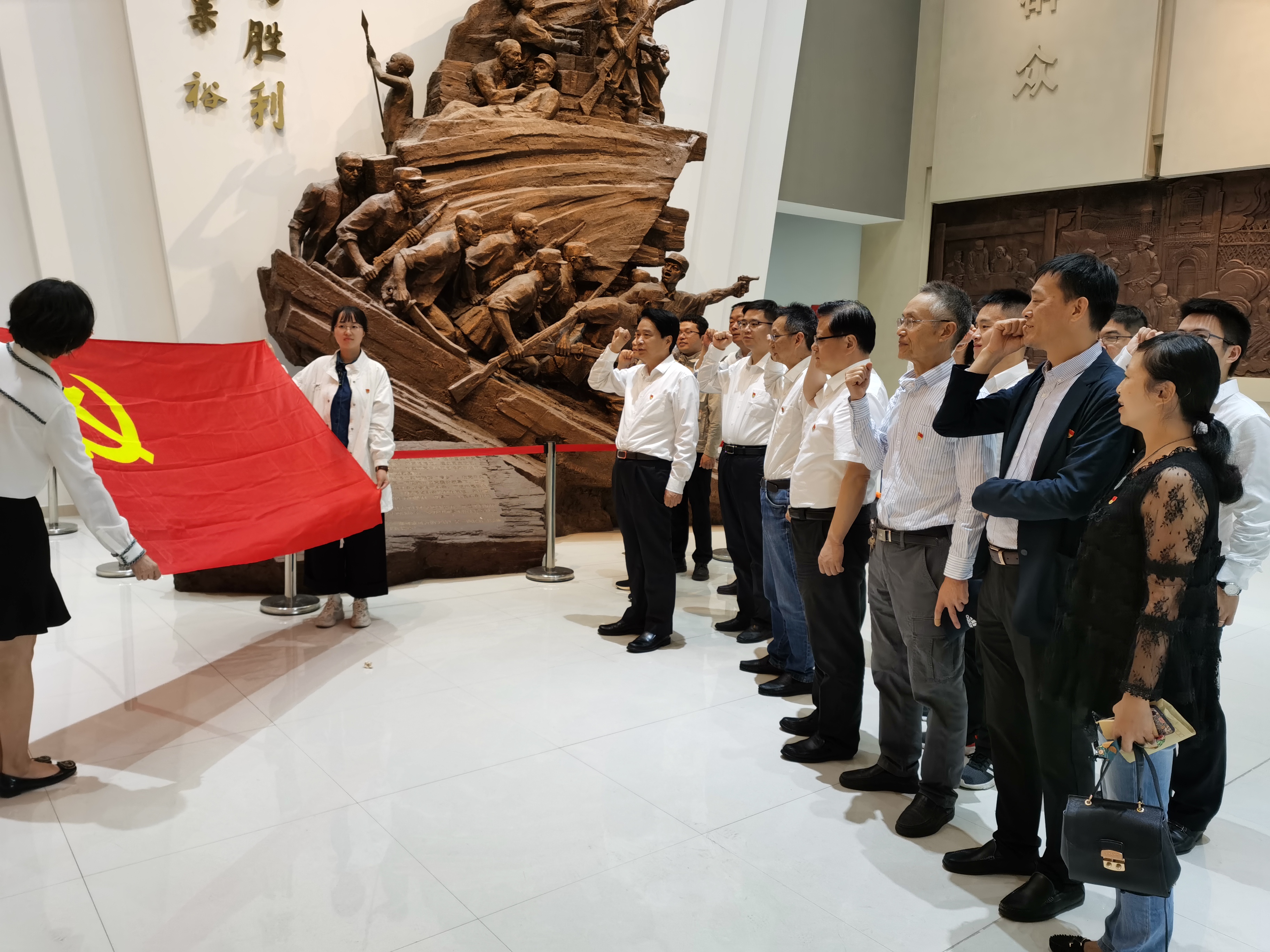 參觀過程中,全體人員都懷著無比崇敬、無比敬仰的心情,仔細觀看了陳列館內的革命文物、先輩遺物、先烈生平、歷史照片和戰(zhàn)爭實物等。這些珍貴的革命遺物和大量的歷史資料,向人們真實展現(xiàn)了在那段艱苦的革命歲月里,我們的革命先輩在中國共產黨的堅強領導下,為了抵御侵略奮勇反抗、為了民族獨立浴血奮戰(zhàn)、為了人民解放頑強斗爭。讓全體人員都深切感受到中國共產黨人為追求理想真理、謀求人民幸福所作出的巨大犧牲和建立的不朽功勛。參觀活動結束前,集團黨委書記、董事長杜永朝同志帶領全體人員,面對鮮紅的黨旗,重溫入黨誓詞。