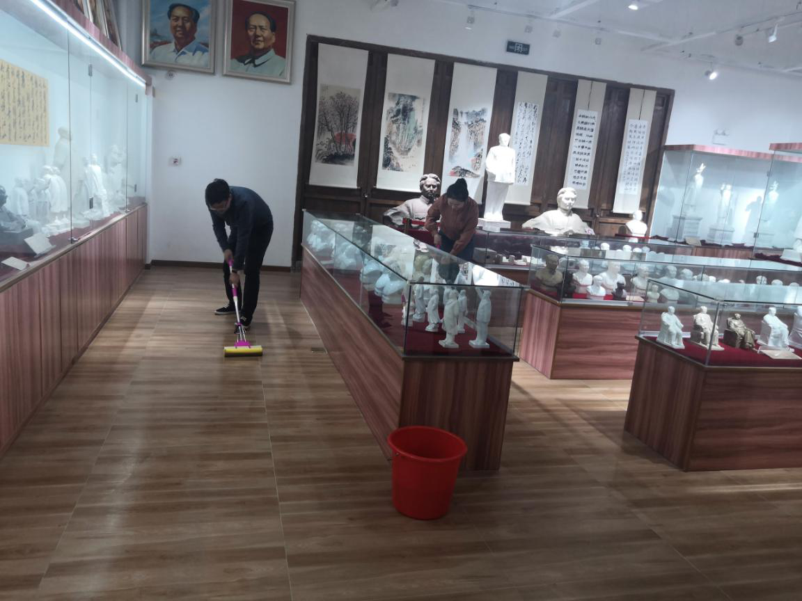 黨員們首先來(lái)到毛主席塑像收藏紀(jì)念館參觀學(xué)習(xí)。紀(jì)念館展示了上世紀(jì)五十年代初至七十年代末全國(guó)各地制作的毛主席塑像及瓷板畫(huà)、瓷擺件等各類(lèi)藝術(shù)品,這些塑像品種繁多、質(zhì)地精美,惟妙惟肖地刻畫(huà)出偉人的精氣神。通過(guò)工作人員的介紹,黨員們了解了不同時(shí)期、不同造型毛主席塑像的故事和意義,也通過(guò)這些塑像更加深入地學(xué)習(xí)了黨史和新中國(guó)史。 塑像紀(jì)念館面積600平方米,藏品達(dá)6500件,由館主沈愛(ài)國(guó)老夫妻倆管理。他們每天都要接待前來(lái)參觀學(xué)習(xí)的黨員群眾,近期不少單位在此開(kāi)展主題活動(dòng),他們倆就更忙了,每天僅打掃衛(wèi)生就很不容易。國(guó)盛環(huán)境黨支部了解這一情況后,主動(dòng)組織黨員帶著拖把、水桶、抹布等到塑像館開(kāi)展志愿服務(wù)。黨員們有的打水,有的拖地,有的擦拭玻璃展柜,大家行動(dòng)迅速、認(rèn)真細(xì)致、井然有序。國(guó)盛環(huán)境黨支部也與沈愛(ài)國(guó)老人約定,今后館里有什么困難,可以隨時(shí)聯(lián)系國(guó)盛環(huán)境黨支部幫助解決。