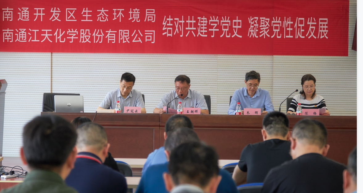6月17日下午,南通江天化學(xué)股份有限公司與南通開(kāi)發(fā)區(qū)生態(tài)環(huán)境局開(kāi)展“結(jié)對(duì)共建學(xué)黨史,凝聚黨性促發(fā)展”主題黨日活動(dòng)。江天公司全體黨員以及開(kāi)發(fā)區(qū)生態(tài)環(huán)境局的黨員代表參加了此次活動(dòng)。