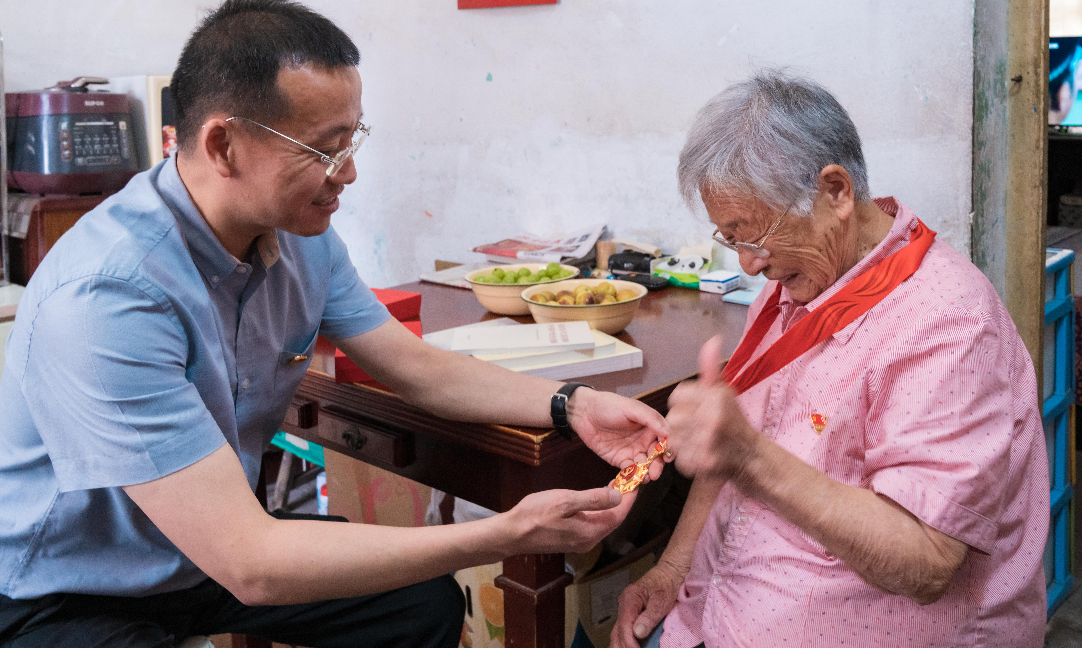 在老黨員家中,尹紅宇為老人家頒發(fā)了紀(jì)念章,向他們表達(dá)了崇高的敬意和深切的問候,并親切詢問了老人們的身體狀況、生活情況,以及當(dāng)年的戰(zhàn)斗歷程,傾聽他們的心聲,叮囑他們要好好保重身體,安享晚年幸福生活。尹紅宇還為離休干部贈(zèng)送了學(xué)習(xí)書籍,并送上黨組織的關(guān)懷。