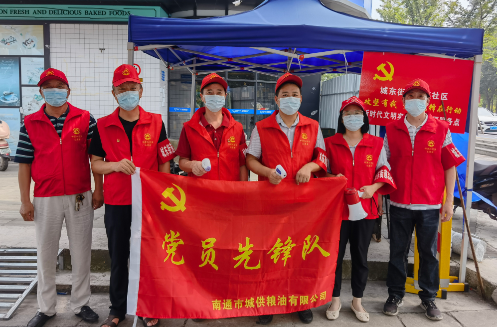 黨旗所指,團(tuán)旗所向。為充分發(fā)揮黨員先鋒模范作用,青年帶頭作用,城供公司成立了黨員先鋒隊(duì)、青年突擊隊(duì)。27日下午,張垛儲(chǔ)備庫(kù)青年突擊隊(duì)成員們利用工作外時(shí)間前往海安市雅周鎮(zhèn)興雅社區(qū),穿上紅馬夾,戴上紅帽子,為進(jìn)入小區(qū)居民測(cè)體溫、查看行程碼;公司本部青年突擊隊(duì)隊(duì)員們伴隨烈日,前往濠東社區(qū)開展除草、地面清潔等志愿服務(wù),經(jīng)過大家共同勞動(dòng),社區(qū)面貌得到了較大改善。