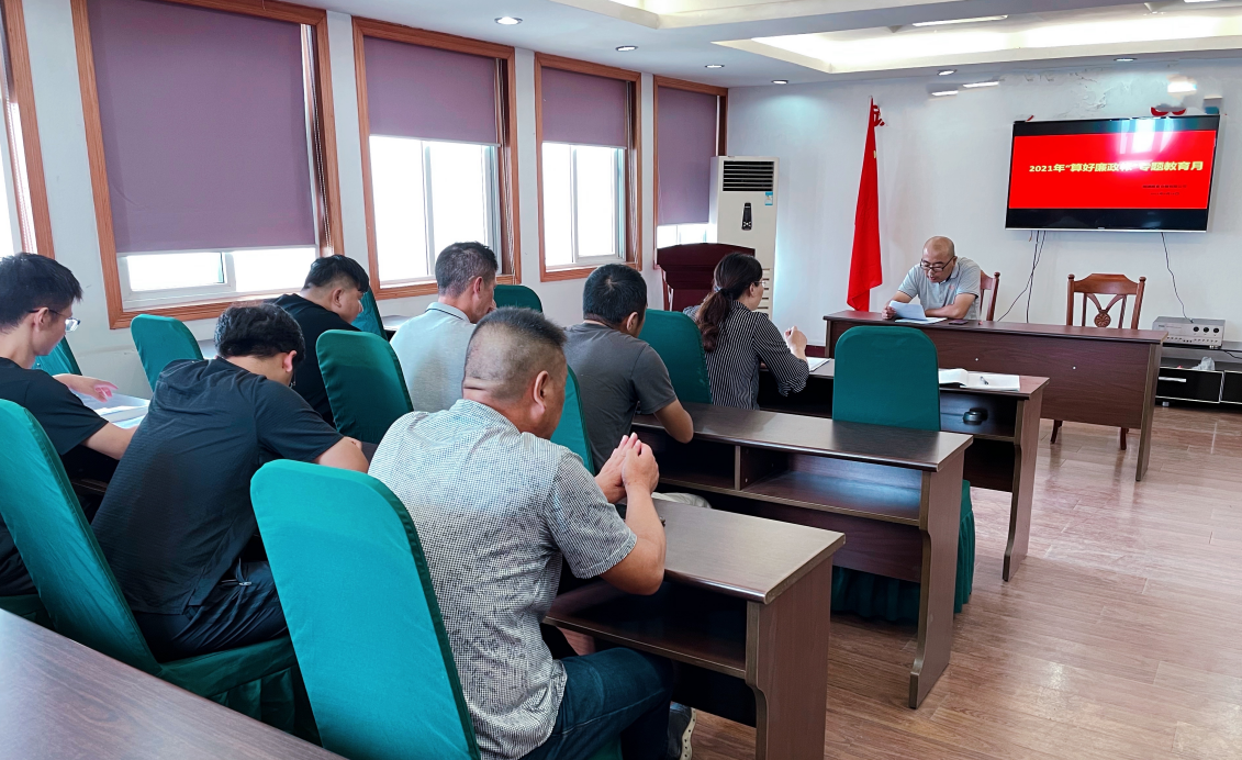隨后,全體參會人員學(xué)習(xí)了張劍橋董事長在“算好廉政帳”專題教育月講座活動上的講話,王建輝要求全體職工認(rèn)真學(xué)習(xí)貫徹張董事長講話精神,樹立正確的“信念觀”、“權(quán)力觀”、“名利觀”、“作風(fēng)關(guān)”、“監(jiān)督關(guān)”及“責(zé)任關(guān)”,加強(qiáng)廉潔修養(yǎng),保持清正廉潔。