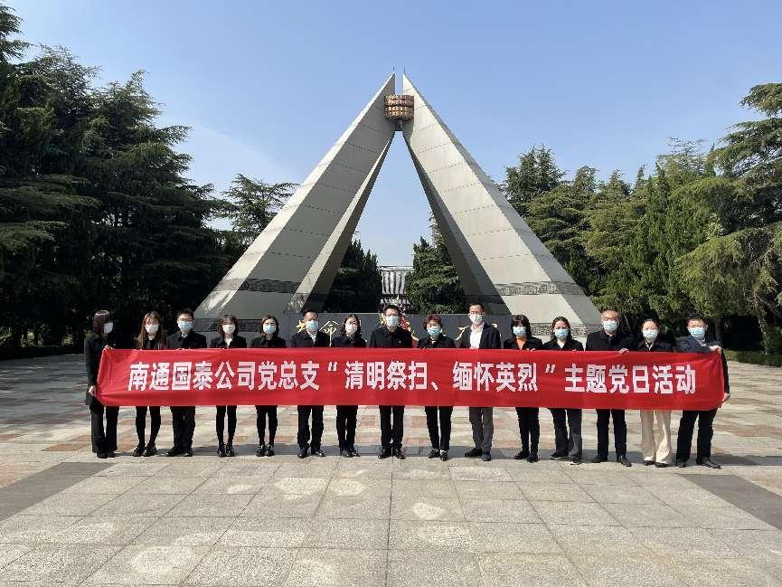 清明將至。為緬懷革命先烈,繼承光榮傳統(tǒng),弘揚(yáng)愛國主義精神,3月29日下午,國泰公司黨總支開展“清明祭英烈”主題黨日活動(dòng)。公司全體黨員、管理人員、入黨積極分子參加。 在南通市烈士陵園,全體黨員向烈士默哀,重溫入黨誓詞,向烈士敬獻(xiàn)花籃和鮮花,莊重地三鞠躬,表達(dá)了對(duì)革命先烈的深切哀悼和無盡的敬仰之情。隨后全體人員懷著對(duì)革命烈士的無比崇敬之情參觀了革命烈士紀(jì)念館,學(xué)習(xí)革命英雄事跡,感受革命先烈英勇頑強(qiáng)的戰(zhàn)斗作風(fēng)、堅(jiān)貞不屈的英雄氣節(jié)、堅(jiān)韌不拔的革命意志、敢于犧牲的獻(xiàn)身精神。