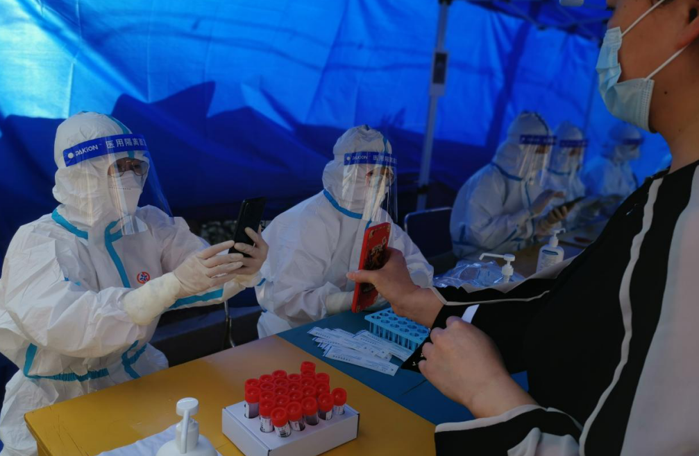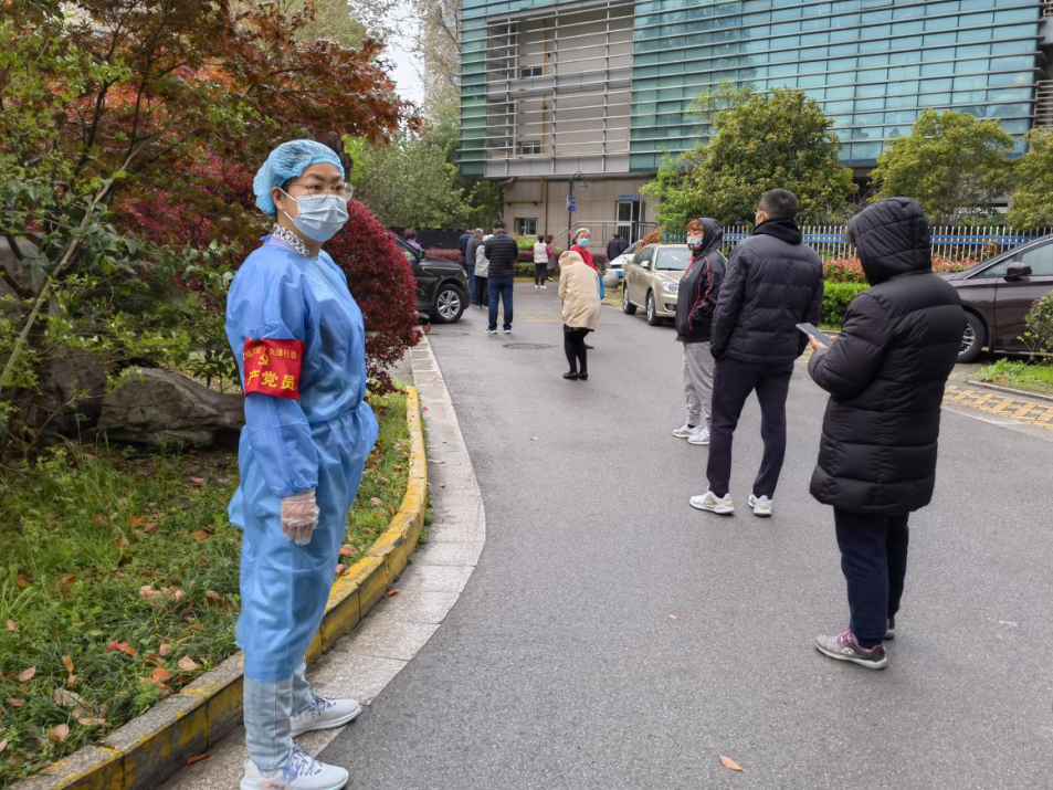 為確保疫情防控知識(shí)宣傳落實(shí)到位,國(guó)融公司綜合事務(wù)部主任袁莉,盡管身患糖尿病,仍主動(dòng)承擔(dān)起了紡織大廈疫情防控的任務(wù)。線上,她利用微信朋友圈、微信群等陣地及時(shí)轉(zhuǎn)發(fā)疫情防控權(quán)威信息,大力推進(jìn)防疫宣傳;線下,她連續(xù)值班值守,主動(dòng)參與起鳳社區(qū)卡口執(zhí)勤,服務(wù)三輪全員核酸檢測(cè),為全力撐起疫情防控“安全傘”貢獻(xiàn)力量。 在疫情防控工作中,資產(chǎn)經(jīng)營(yíng)部主任楊凌燕夫婦更是以辛苦付出贏得了一致認(rèn)可。她是支援起鳳社區(qū)的志愿者,身穿“大白”協(xié)助醫(yī)護(hù)人員進(jìn)行全民核酸檢測(cè);她是支援所在社區(qū)的急先鋒,維持秩序、引導(dǎo)群眾,盡心盡責(zé)。她的丈夫作為一名公務(wù)員也一起就地轉(zhuǎn)為志愿者,兢兢業(yè)業(yè)做著宣傳解釋疫情防控相關(guān)政策、服務(wù)全員核酸檢測(cè)等工作。楊凌燕說:“累是真的,但是能得到大家的認(rèn)可和贊揚(yáng),值了!” 下沉到社區(qū)的干部職工化身“大白”成為了協(xié)助做好核酸檢測(cè)的標(biāo)配。財(cái)務(wù)審計(jì)部副主任張煒第一次穿上全套“大白”支援起鳳社區(qū)核酸檢測(cè)后,就有了非常深刻的體會(huì)。4月12日下沉到所在社區(qū)后又一次穿起“大白”,四個(gè)多小時(shí)核酸檢測(cè)完,再回到家面對(duì)兩個(gè)孩子時(shí),她表示“電量?jī)H剩百分之一”。話語(yǔ)中,既有樂觀積極的心態(tài),更有對(duì)工作負(fù)責(zé)的堅(jiān)守和擔(dān)當(dāng)。