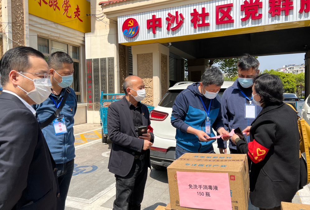 高效運轉(zhuǎn),物資向“戰(zhàn)區(qū)”匯聚 由于連續(xù)多日的全員核酸,社區(qū)防疫物資消耗巨大,為保證防疫工作的全面勝利,4月15日,眾和黨支部主動聯(lián)系所轄文峰街道和觀音山街道,在充分了解需求后,多方籌措物資,協(xié)調(diào)物流配送。4月16日一早,總價近4萬元的KN95口罩、免洗手消毒液、防護手套、隔離服等防疫物資送達文峰街道和觀音山街道,為社區(qū)防疫工作提供物資支持。