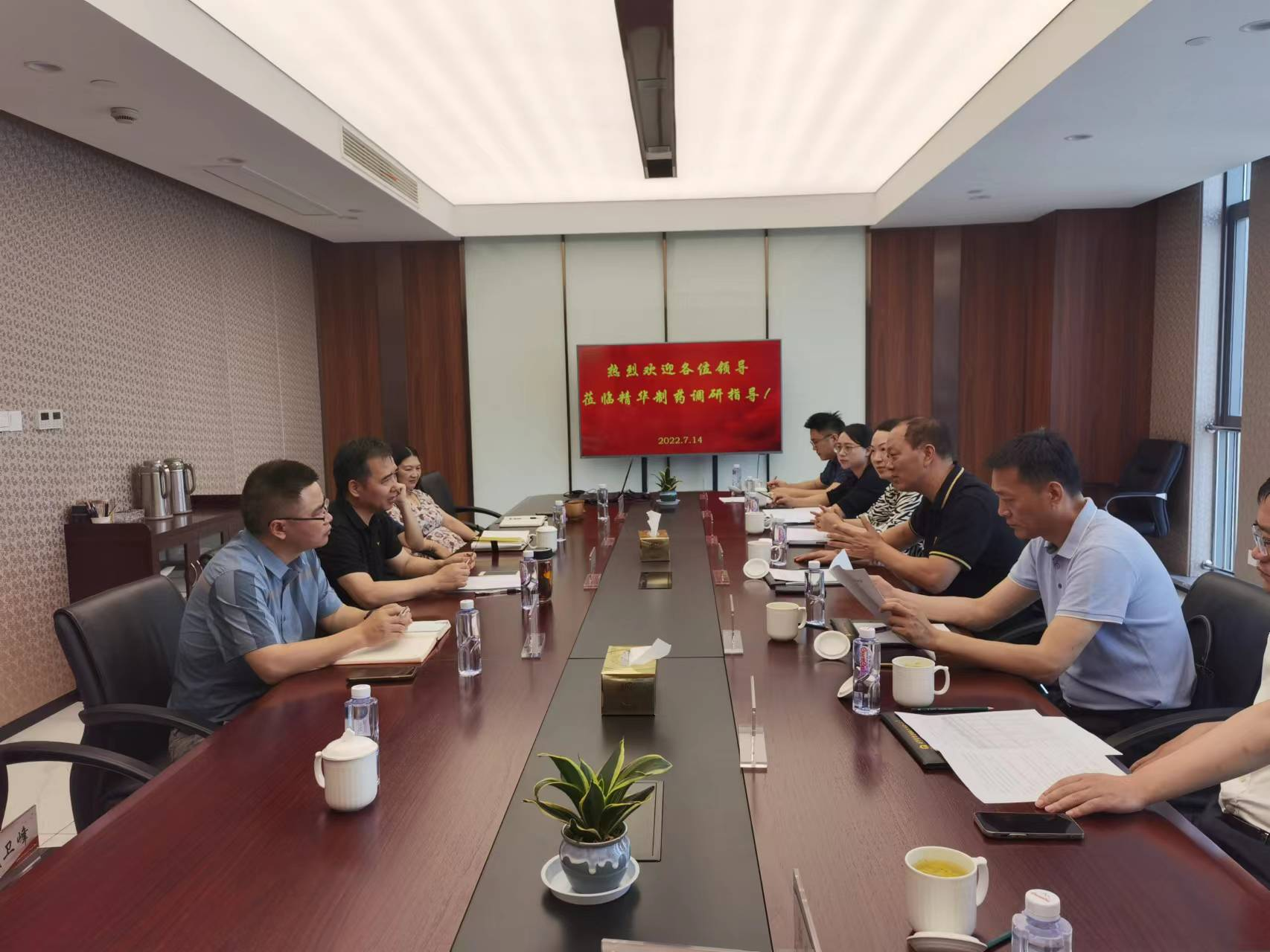 7月14日,產(chǎn)控集團(tuán)總經(jīng)理顧建國、副總經(jīng)理陳云光、副總經(jīng)理陳弘穎一行冒著炎炎酷暑來到精華制藥集團(tuán)調(diào)研,重點了解了企業(yè)上半年的運營工作,并就下一步精華制藥運營發(fā)展等方面進(jìn)行研究指導(dǎo)。